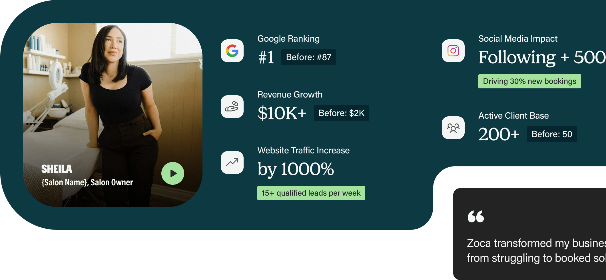 By combining advanced AI, local SEO expertise, and high-converting website designs, Zoca helps beauty and wellness businesses convert every search and click into revenue. It’s the ultimate tool for scaling success.